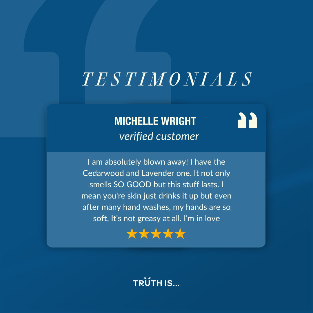 - Cedarwood & Lavender: Mango Butter, Beeswax, Apricot Kernel Oil, Coconut Oil, Jojoba Oil, Cedarwood Essential Oil, Lavender Essential Oil, & Rosemary Oleoresin.